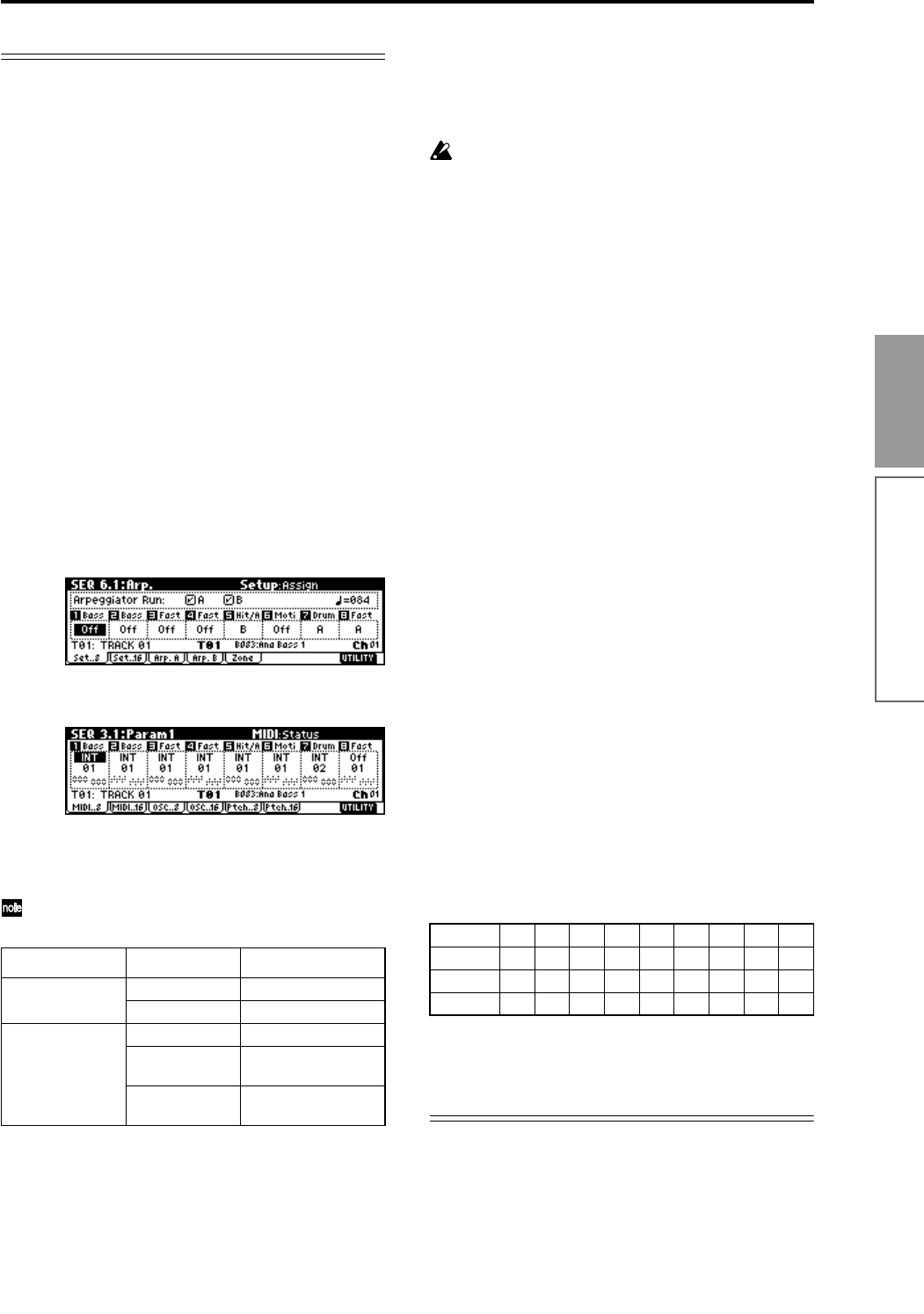 arpeggiator is set only to 01, refer to the lines for “01 only.”