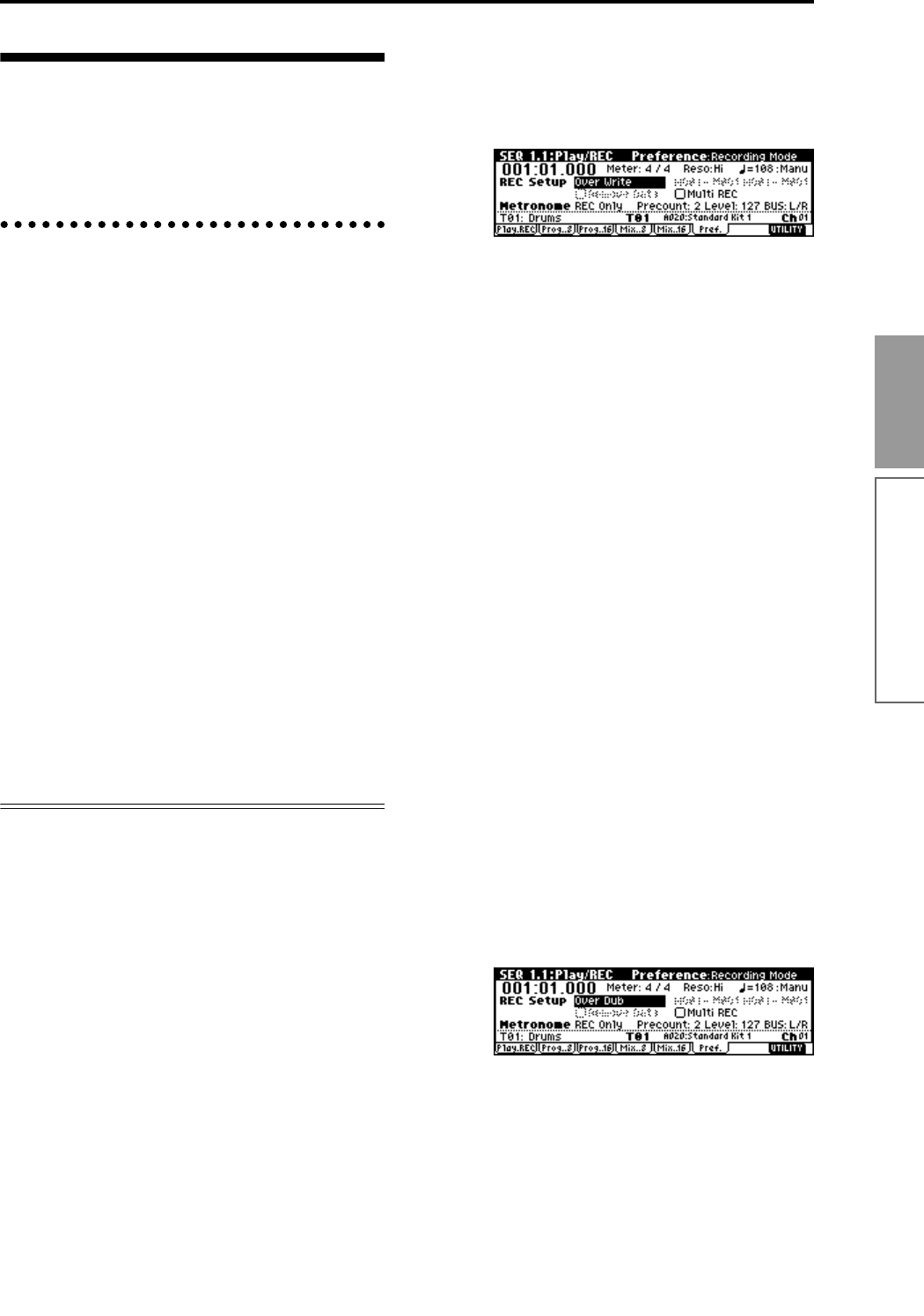 2 Set the “Recording Mode” to Over Dub. (SEQ 1.1: