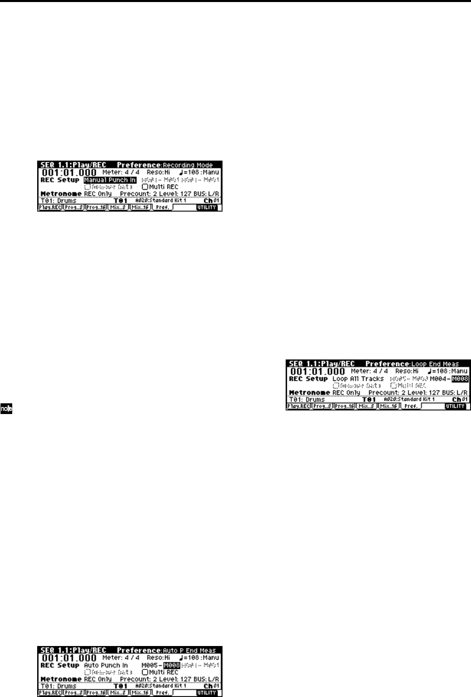 2 Set the “Recording Mode” to Auto Punch In. (SEQ