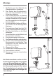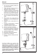 Montage 1. 2. 3. 4. 5. 6. 7. 8. 9. 10. 11. 12. 13. 14. Die Batterie auf dem Endstück der Wasserinstallation installieren. Den Deckel des Durchlauferhitzers nach dem Aufdrehen der zwei Schrauben abdrehen. Den Durchlauferhitzer mit Batterie anhand von Verbindungsrohren und anderen Elementen an die markierten Öffnungsstellen der Montagedübel anschließen. An den markierten Stellen die Öffnungen bohren und die Montagedübel platzieren. Die elektrischen Kabel durch die Tülle des Durchlauferhitzers einführen.