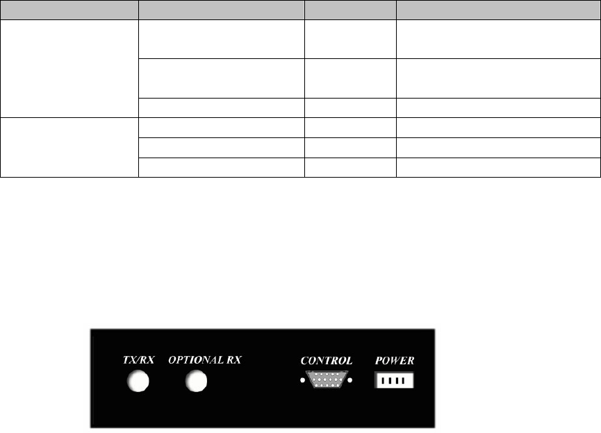 The back panel includes cable connection for Tx/Rx mode with an optional