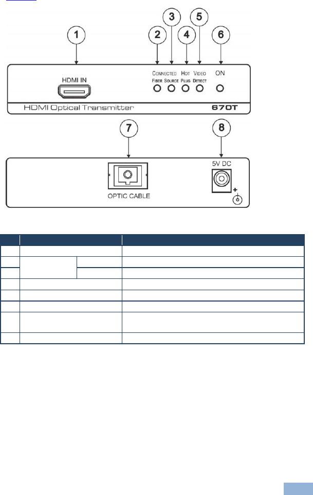 Figure 1 defines the 670T HDMI Optical Transmitter:
