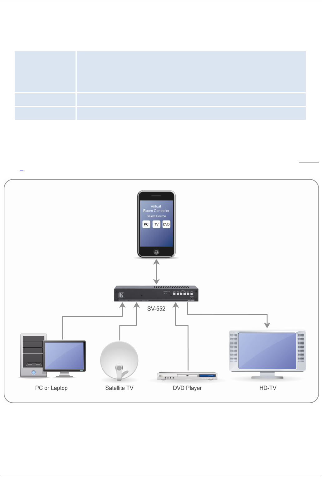 will trigger switching. The audio and room control function is configured in the SV-552 (see Figure