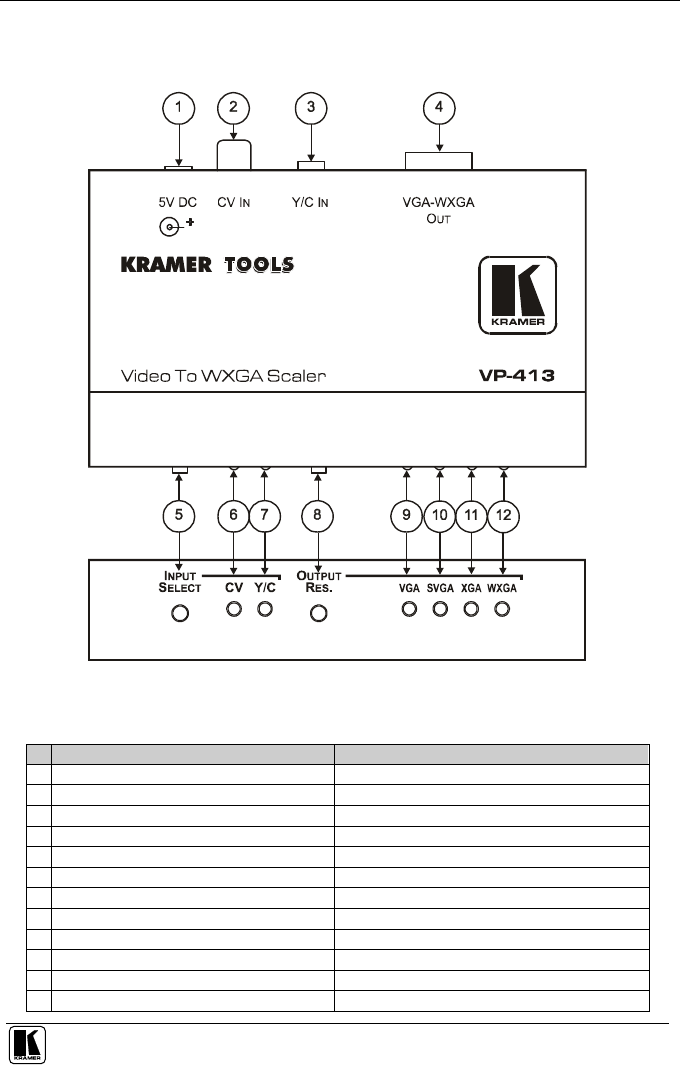 Figure 1 and Table 2 define the VP-413 Video to WXGA Scaler: