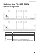 Kramer Electronics Ltd. Defining the PA-240Z 240W Power Amplifier This section defines the PA-240Z. Figure 1: PA-240Z 240W Power Amplifier Front Panel Figure 2: PA-120Z 120W Power Amplifier Front Panel # Feature ON LED Function Lights green when powered on and orange when in standby. INPUT 1 LED Lights green when a signal is present on input 1. INPUT 2 LED Lights green when a signal is present on input 2. MUTE Lights red when the output is muted, off when unmuted.