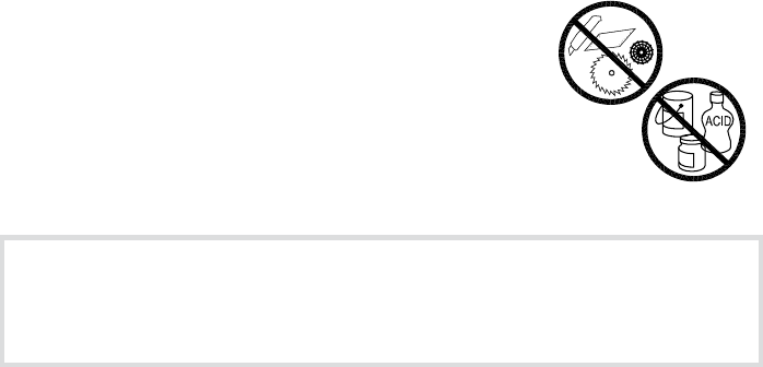 2. Do not clean with soaps, acid, polish, abrasives, or harsh cleaners