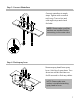 Step 1. Install faucet and secure mounting hardware Secure the faucet body with the rubber and metal washers (2) and the mounting nuts and screws (3). Do not overtighten. 2 3 Step 2. Attach spray hose and weight Connect spray hose to quick connector attached to supply line. Install weight (4) on lowest vertical point on spray hose. White line on the spray hose should be in the center of the weight.
