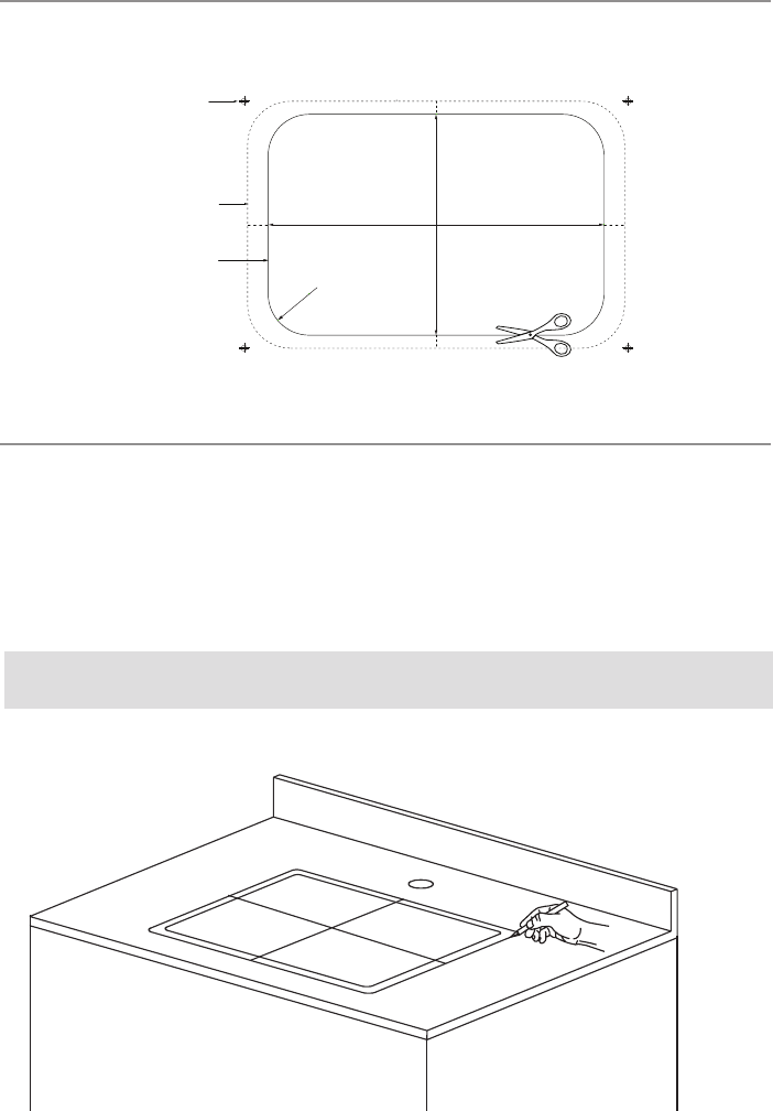 • Mark the faucet hole centerline on the countertop using the vertical line