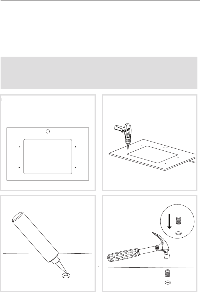template to mark the anchor placement on the countertop. Drill 5/16”