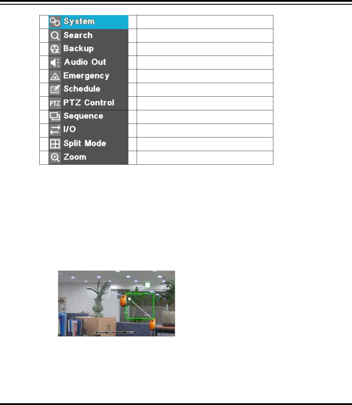• On Live : Display Menu and select “Zoom In/ Zoom Out”. And move with direction buttons.