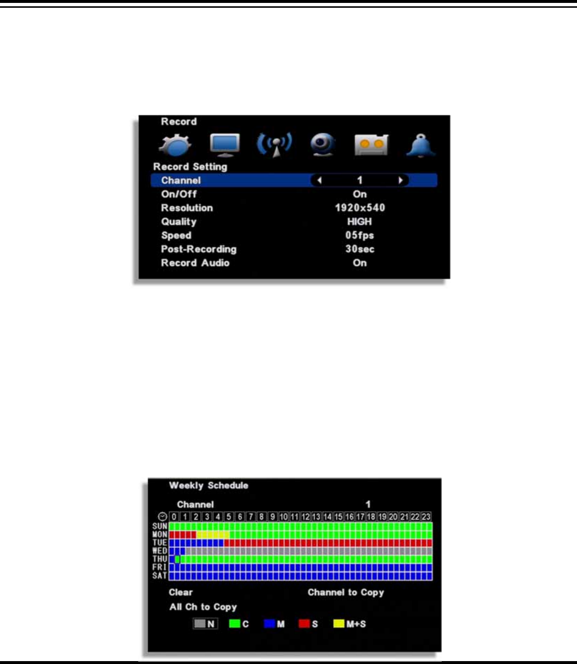 Set schedule record per day of the week, time and channel. And setting per hour is also available.