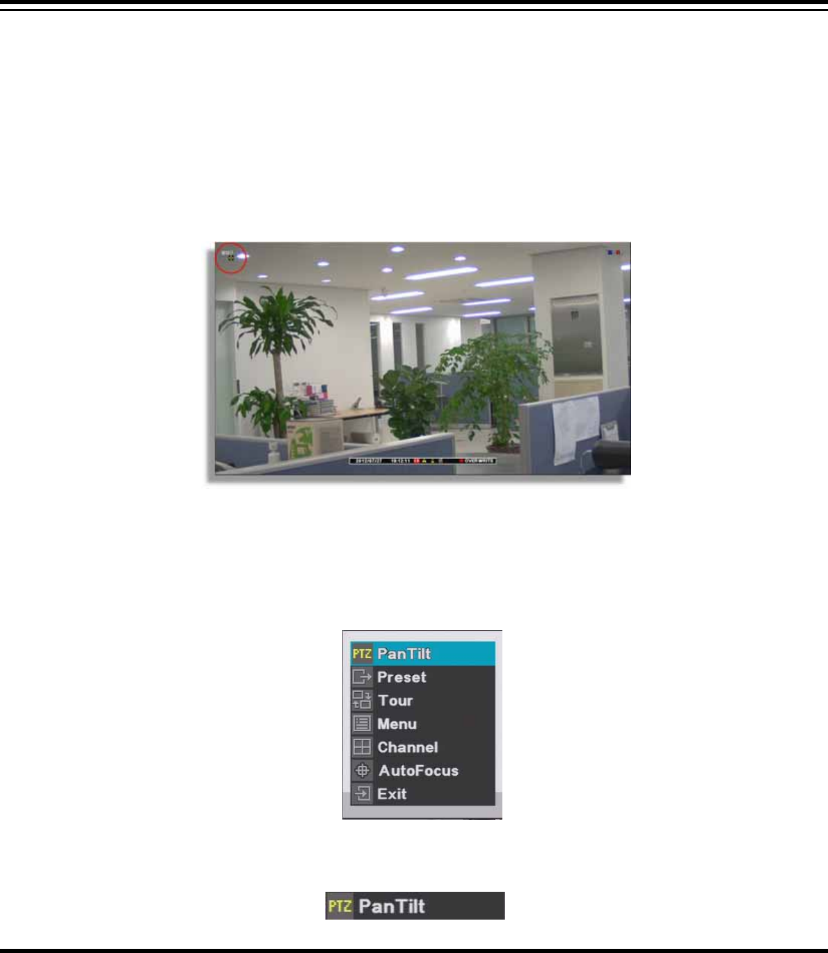 • Mouse menu: Click the right button of mouse and select the ‘PTZ’.