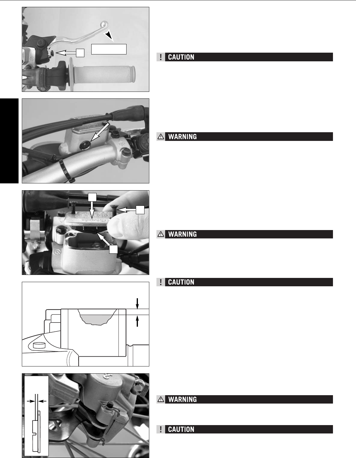 voir to 5 mm (0.2 in) below the rim with clean brake fluid DOT 5.1 (e.g. Motorex