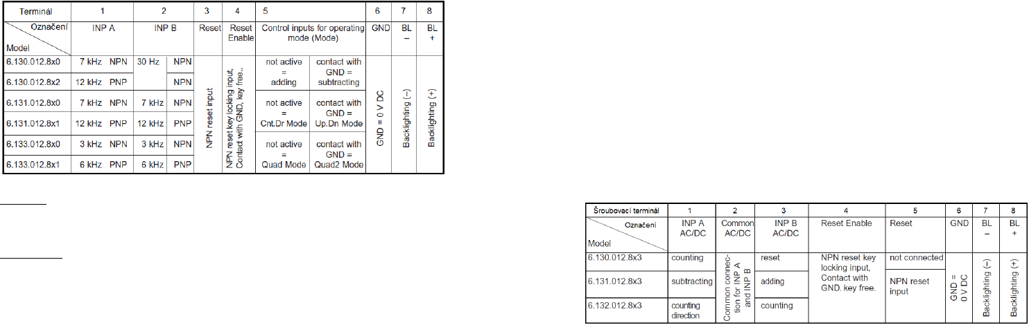not active = režim Cnt.Dr / contact with GND (připojení k GND) = režim Up.Dn