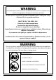 WARNING If the information in this manual is not followed exactly, a fire or explosion may result causing property damage, personal injury or death. Do not store or use gasoline or other flammable vapors and liquids in the vicinity of this or any other appliance. WHAT TO DO IF YOU SMELL GAS Do not try to light any appliance. Do not touch any electrical switch Do not use any phone in your building. Immediately call your gas supplier from a neighbor’s phone. Follow the gas supplier’s instructions.