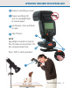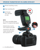 OPERATION: TRANSMITTER WITH ON-CAMERA SPEEDLIGHT 1 Connect everything securely 2 Power everything ON Set 3 Channel, Zone and Mode on radio NOTE: On-camera speedlight optional. May be TTL-enabled or full manual. Remote flashes must be set to manual mode when syncing from a Plus IV on camera. Remote flashes will not perform TTL.