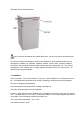 6 Specifications 6.1 Technical Parameters Model DW-FL90/135/270 The facility safe types I Kind B Type Climatic Type N Input Power(W) 280/280/320 Storing Temperature -10~-40℃ Refrigeration R507/100g 90/135/270 Size (depth x width x height) (mm) 623x544x842 623x544x1123 620x600x1750 220 Rating frequency (Hz) 50 Valid Capacity (L) Rating Voltage (V~) 6.2 Packing List Item Operation Manual Key Defrost shovel Qty 1 2 1 6.