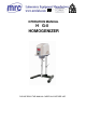 OPERATION MANUAL H2G-0 HOMOGENIZER PLEASE READ THE MANUAL CAREFULLY BEFORE USE.