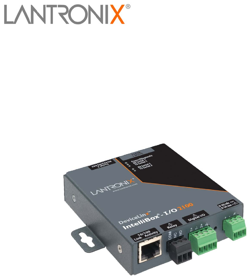 1: About This Guide Additional Documentation Visit the Lantronix web site at www.lantronix.com/support/documentation for the latest documentation and the following additional documentation. Document Description IntelliBox-I/O 2100 User Guide Information about the IntelliBox hardware, testing the IntelliBox, and integrating the IntelliBox device into your product.