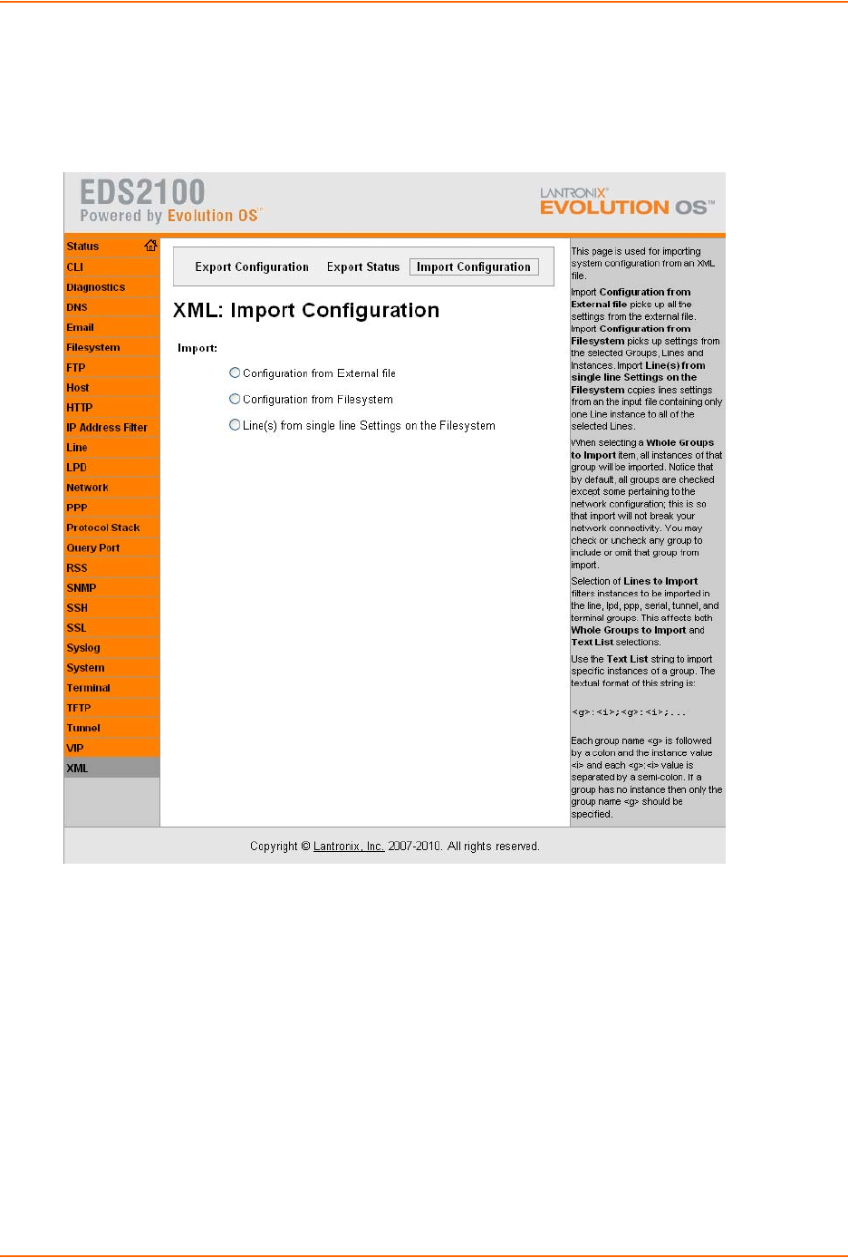 1. Click XML > Import Configuration. Figure 14-7 shows the page that displays.