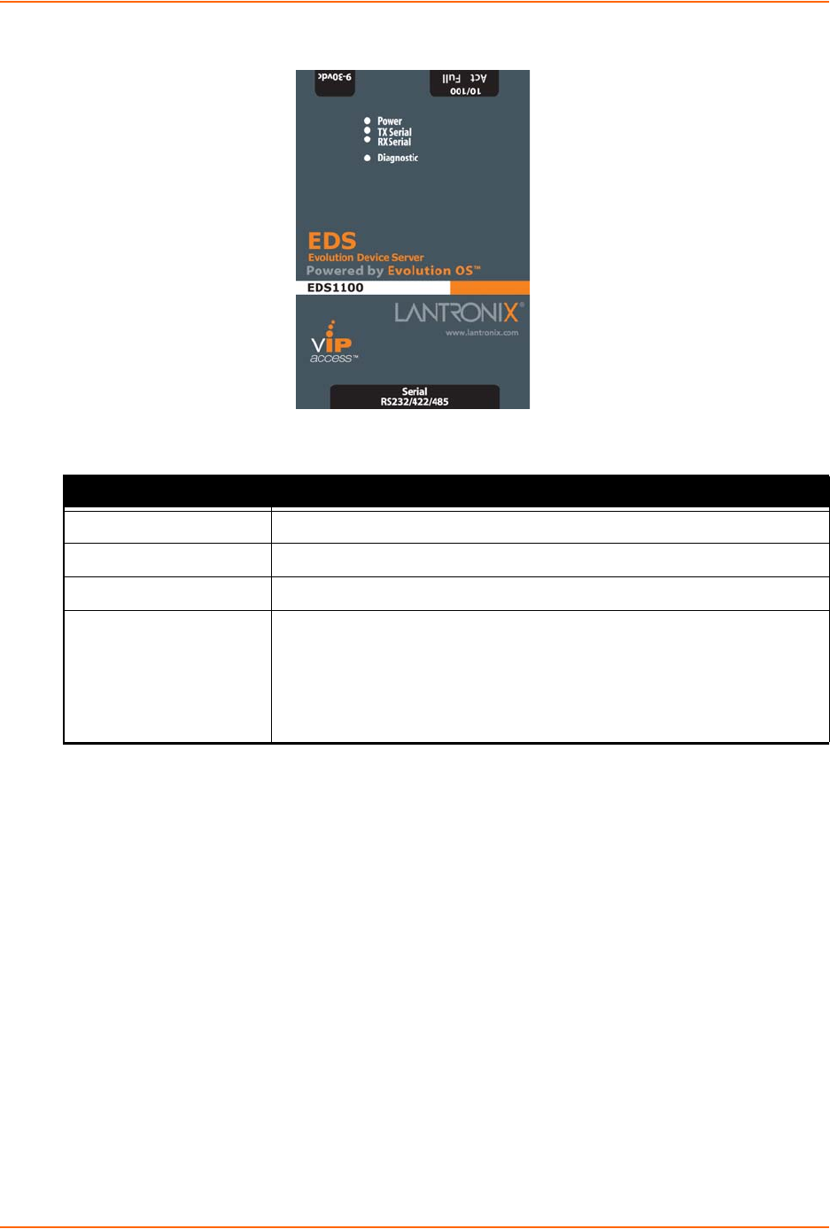 RX Serial (yellow) Blinking—EDS is receiving data on the serial port