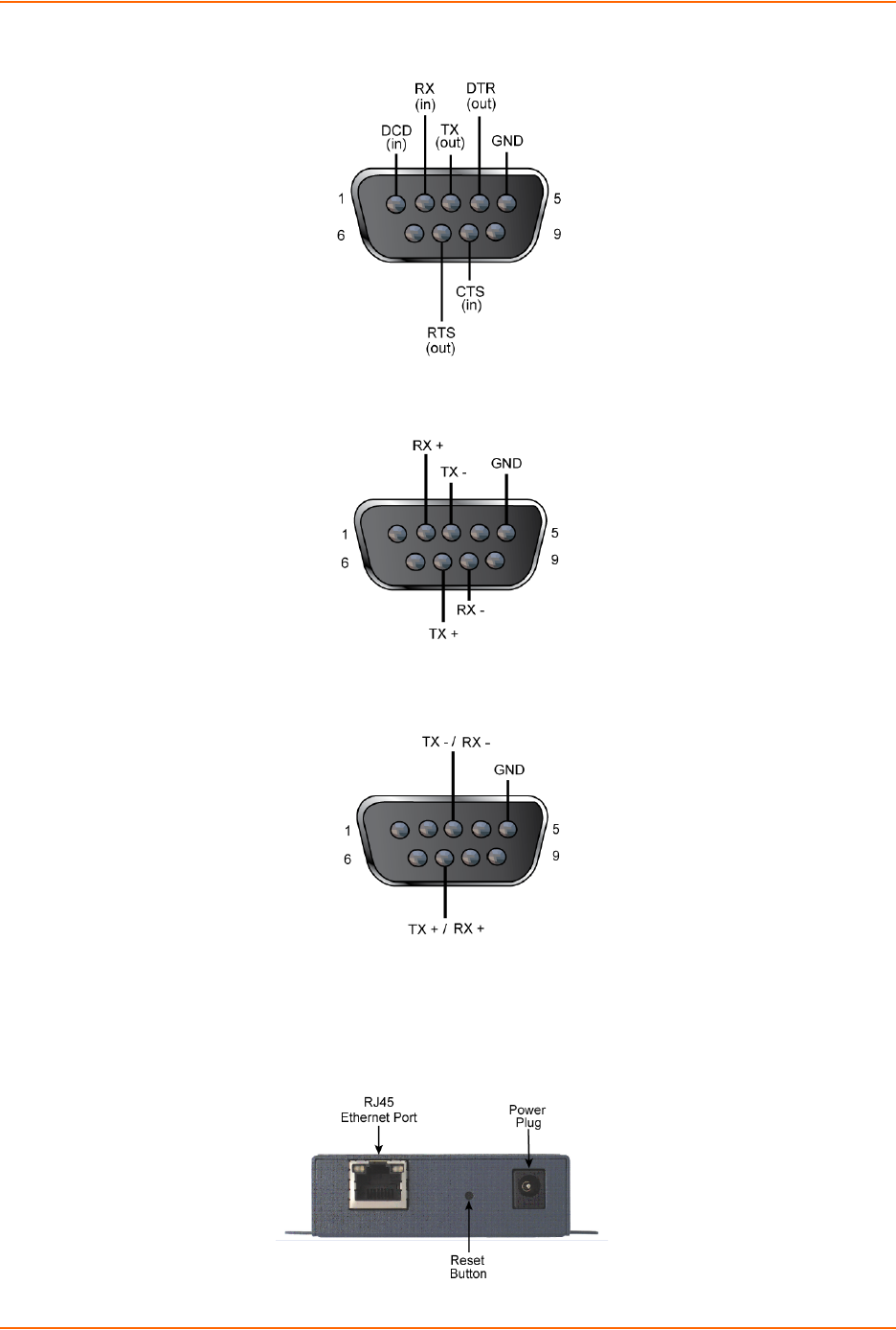 Figure 4-3 EDS2100 Pinout Configuration for RS-422 (4-wire)
