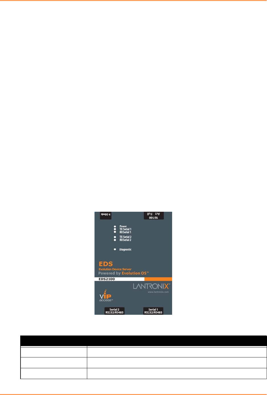 Figure 4-6 shows the top of the EDS2100. Table 4-1 lists and describes the LEDs.