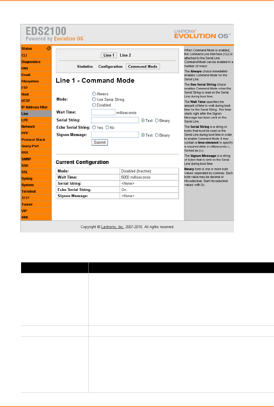 Use Serial String—Enables Command Mode when the serial string is