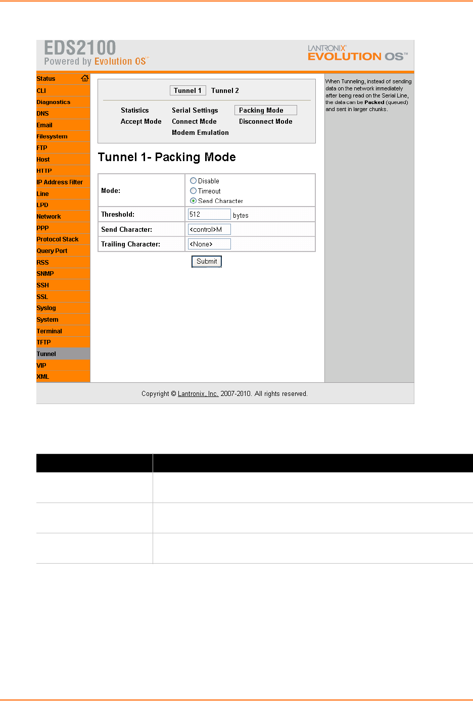 Table 8-13 Tunnel Packing Mode (Send Character) Fields