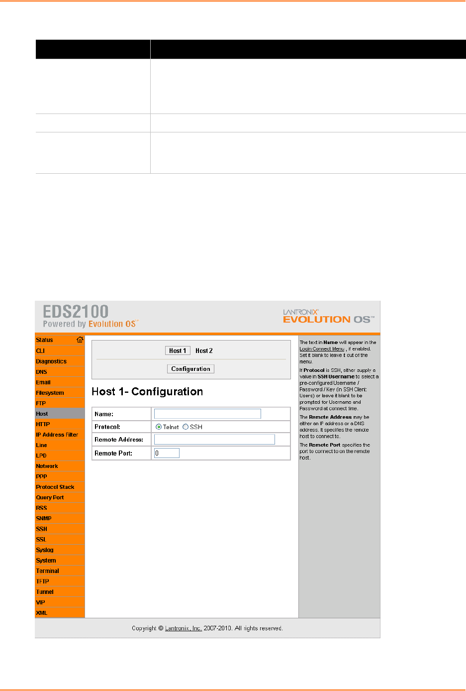 You can configure a remote host by using the Host web page. To configure a remote host, perform