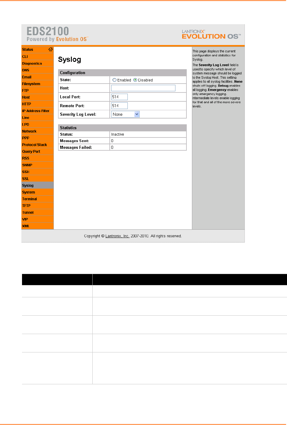 EDS1100/2100 should log. This setting applies to all syslog facilities. The