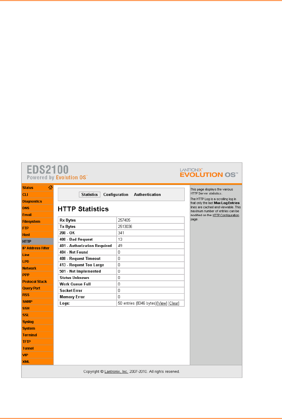 1. Click HTTP > Statistics. Statistics is the default. Figure 10-7 shows the page that displays.
