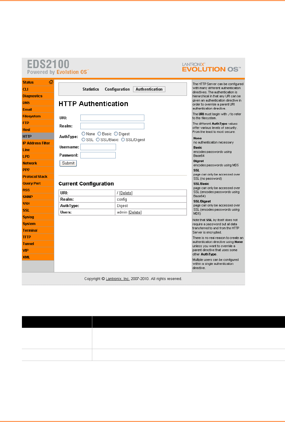 1. Click HTTP > Authentication. Figure 10-9 shows the page that displays.