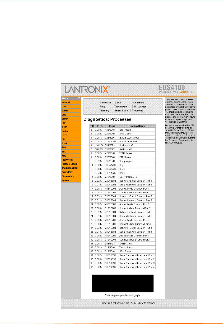 Clicking Processes from one of the diagnostics page displays a read-only screen that