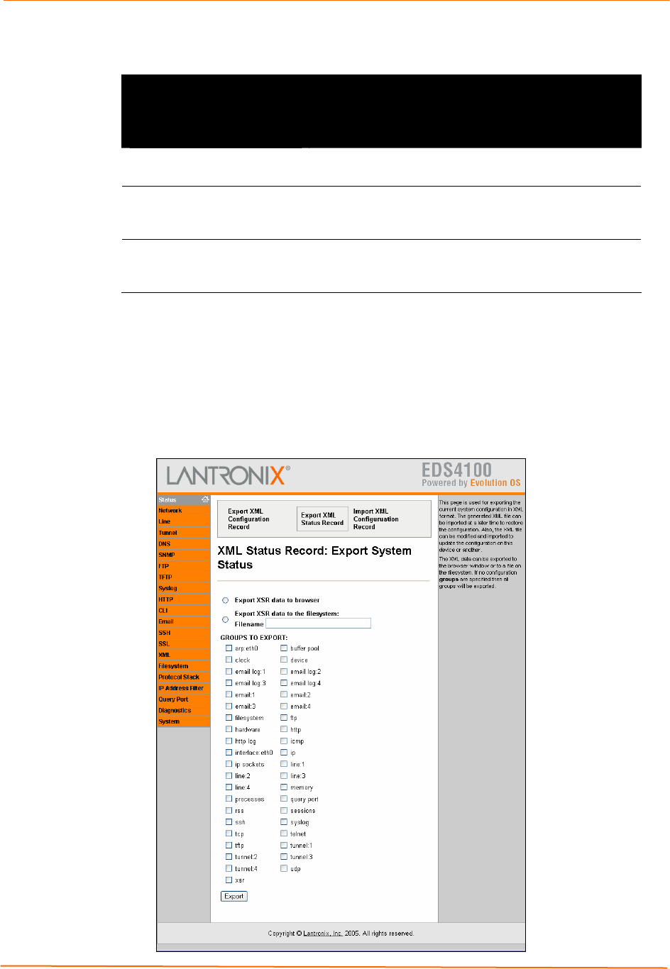 Export XCR data to browser Select this option to export the XCR data to a Web