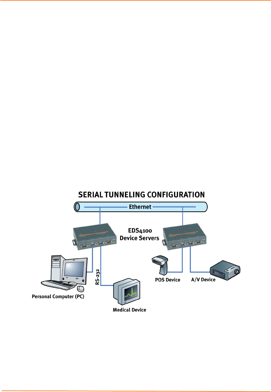 transparent serial tunneling across an Ethernet network. In this example, a POS device in