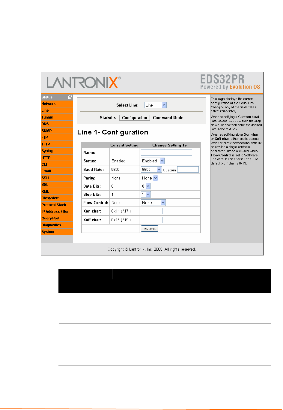 If you click Configuration at the top of one of the Line Settings pages, the Line –