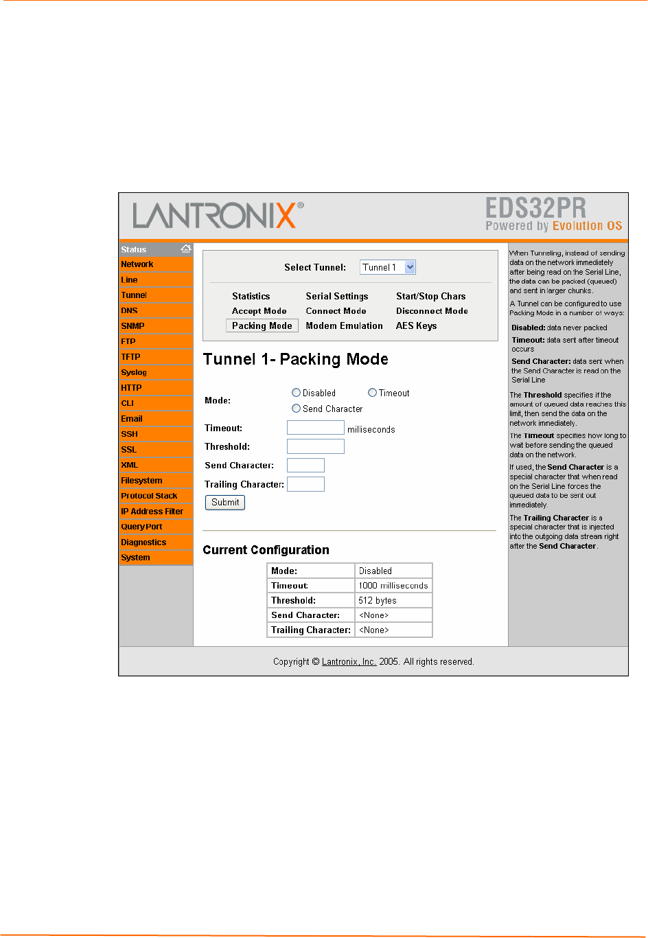 Mode at the top of one of the Tunnel pages, the Tunnel – Packing Mode page displays.