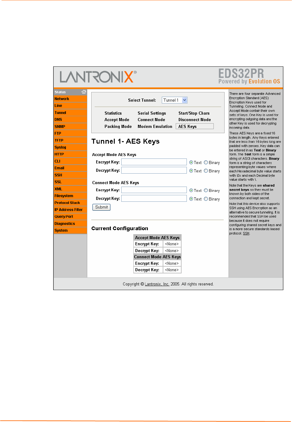 Figure 7-12. Tunnel – AES Keys Page