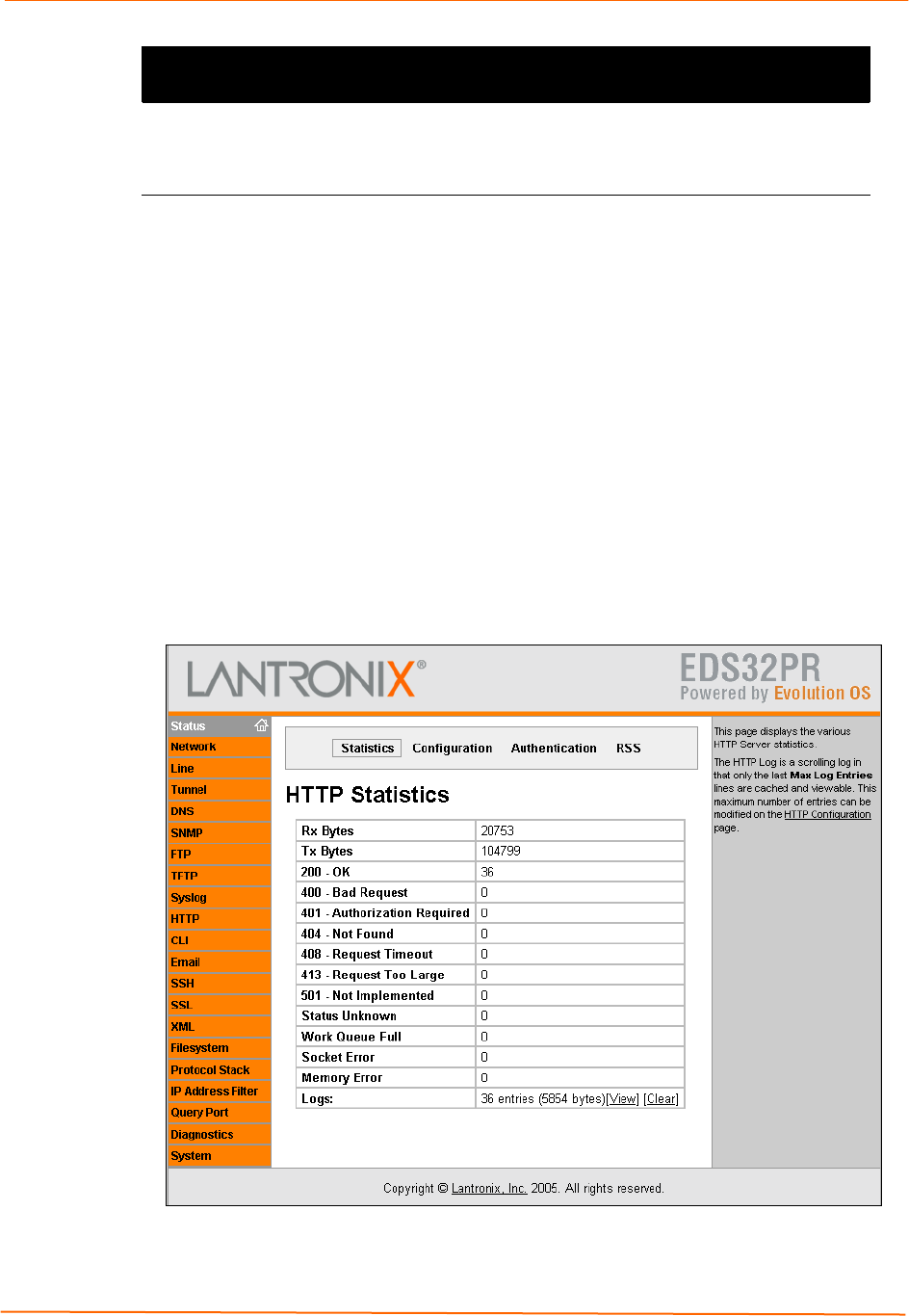 Clicking the HTTP link in the menu bar displays the HTTP Statistics page. This page has