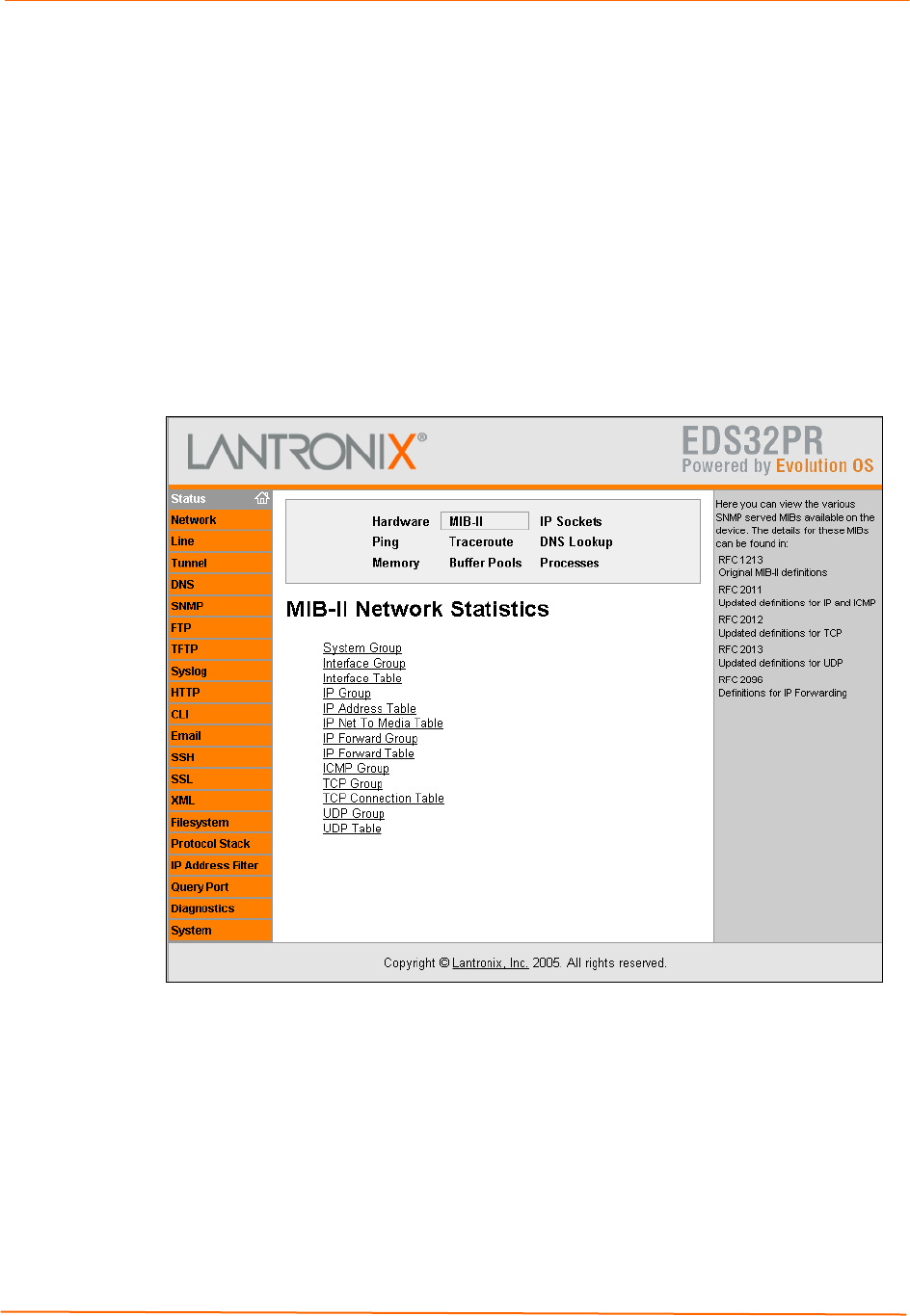 Clicking MIB-II Stats from one of the Diagnostics pages displays the MIB-II Network