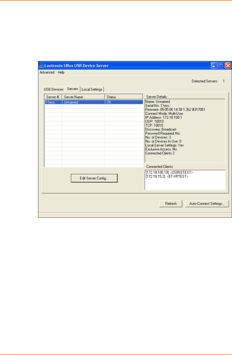 4. To verify that the application sees the UBox Device Server, click the Servers tab.