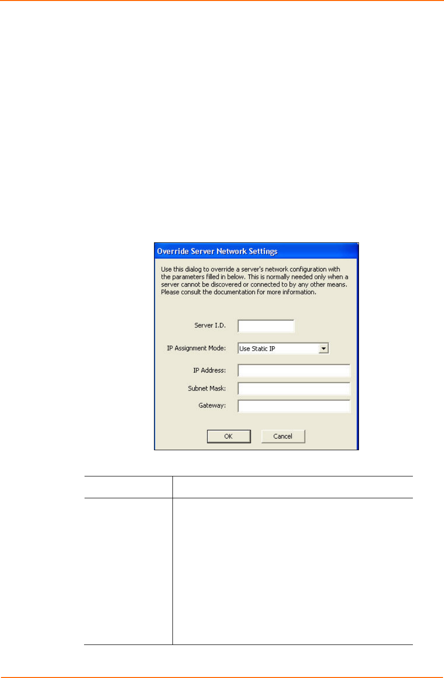 Figure 5-9. Override Server Network Settings Window