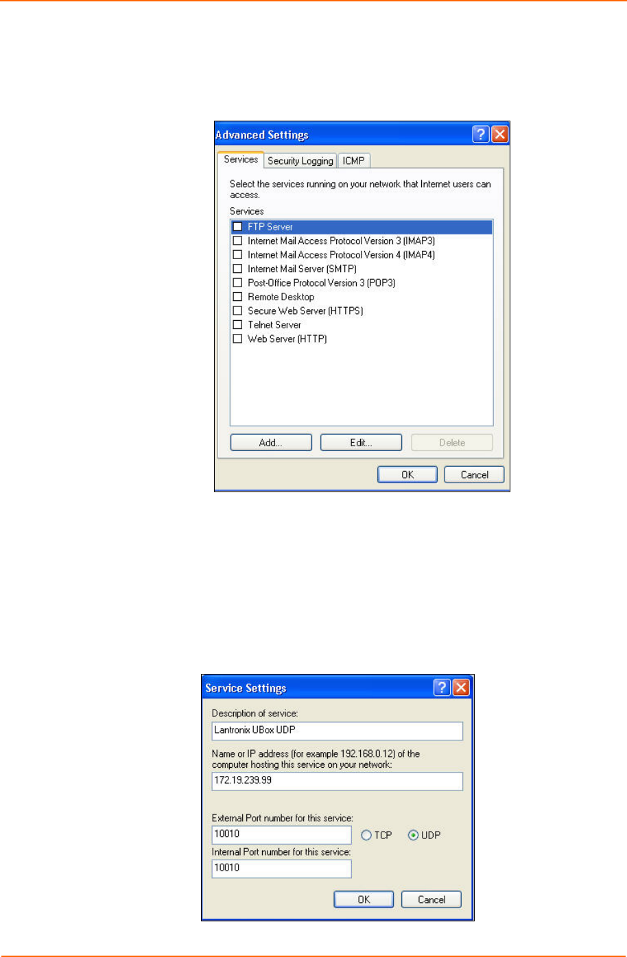 1. In the Advanced Settings window, click the Add button. The Service Settings