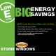 Storm windows with Low-E glass can save up to $35 per year per window on your energy bill, vs. just $12 per window per year with clear glass.