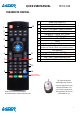 QUICK USER MANUAL MMC-X40 THE REMOTE CONTROL 1 10 1 2 2 3 4 3 5 4 6 7 8 5 9 6 11 7 8 12 10 11 12 13 14 Power ON, Power OFF Rewind, Fast forward Previous, Next Search / Play Pause / Zoom In and Out Menu, Home, back page Navigate UP, DOWN, LEFT, RIGHT ENTER or CONFIRM (OK) Volume UP or DOWN Mute Numerical keys TV Navigation Type (Standard via remote buttons or control pointer using remote buttons) LED Indicator Channel UP or DOWN Air Mouse Calibration (See FAQ page) Stop / Start / Apps sc