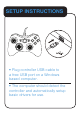 SETUP INSTRUCTIONS • Plug controller USB cable to a free USB port on a Windows based computer. • The computer should detect the controller and automatically setup basic drivers for use.