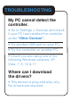 TROUBLESHOOTING My PC cannot detect the controller. • Go to Settings > Devices and check if your PC has installed the controller under “Other Devices”. • Try another USB port on your PC. • Try the controller on another PC. • Check you are using one of the following Windows versions: XP, Vista, 7, 8, 10 & 11. Where can I download the drivers? • This device is plug and play only. No drivers are required.