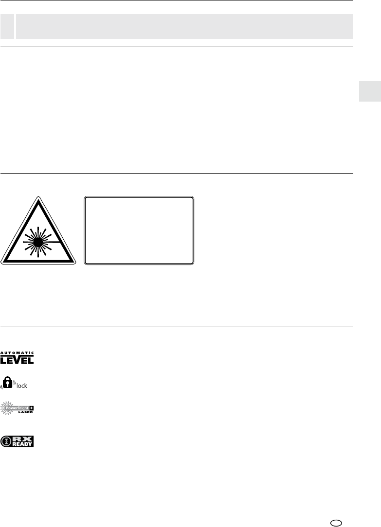 – Selvnivelleringsområde 3°, nøjagtighed 2 mm / 10 m
