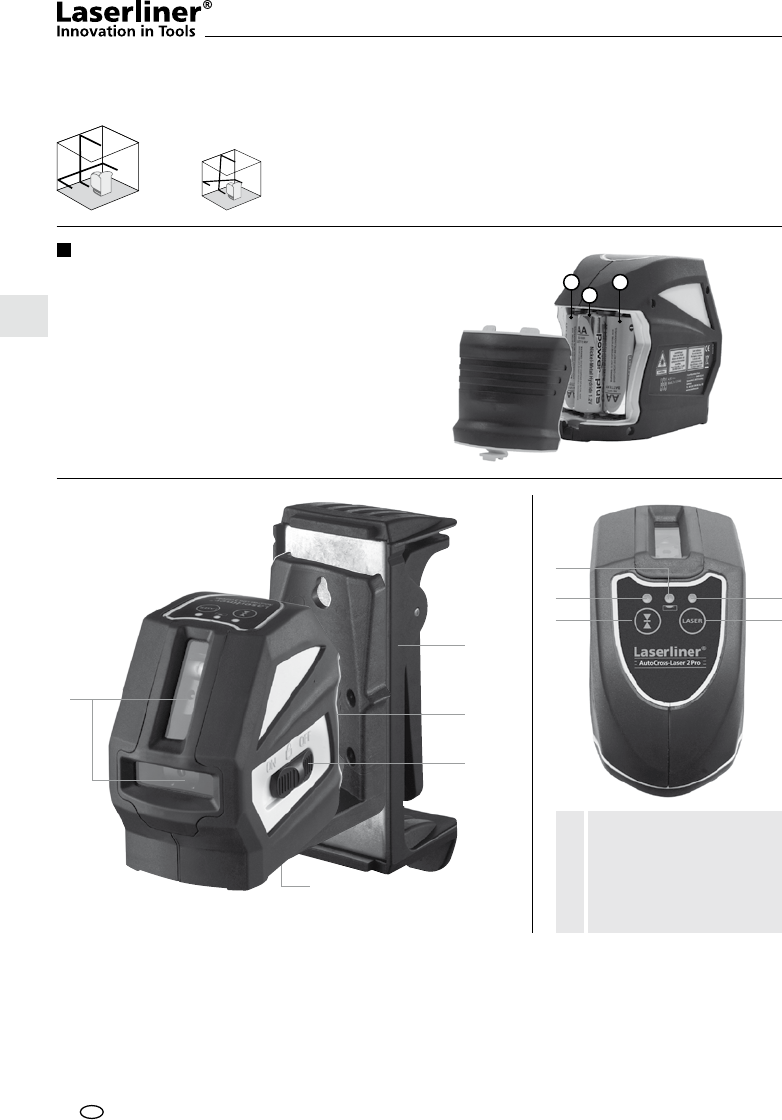 H = línea de láser horizontal / V = línea de láser vertical / S = función de inclinación